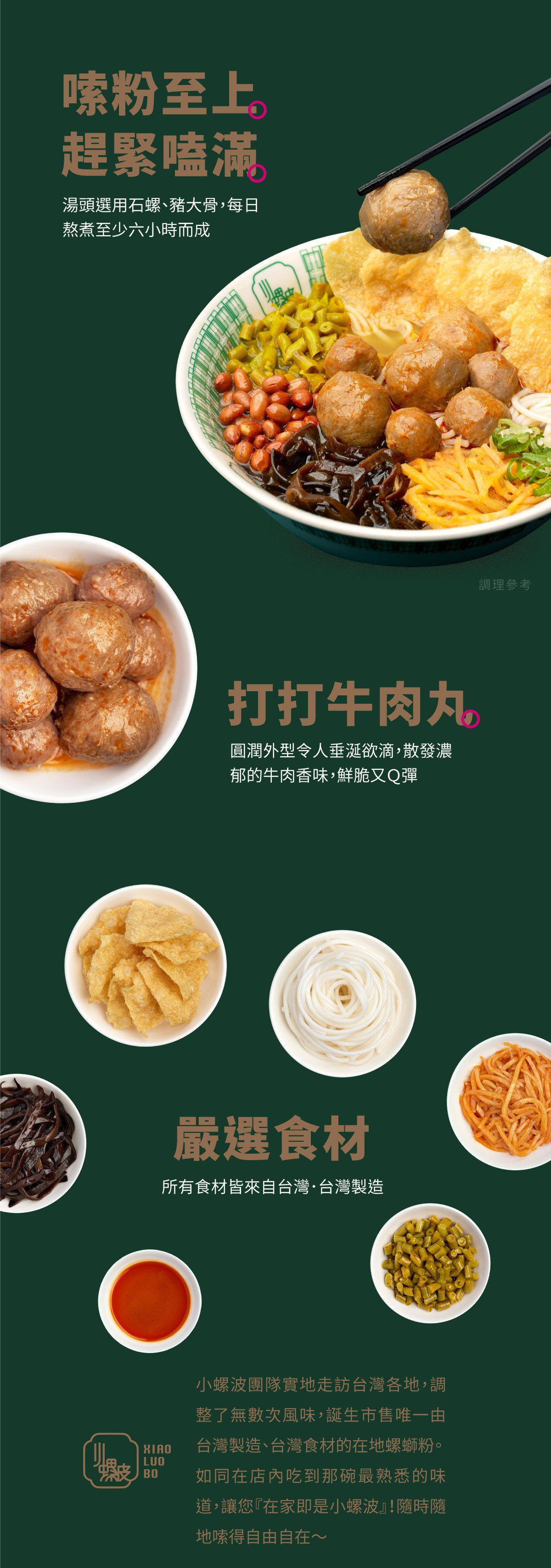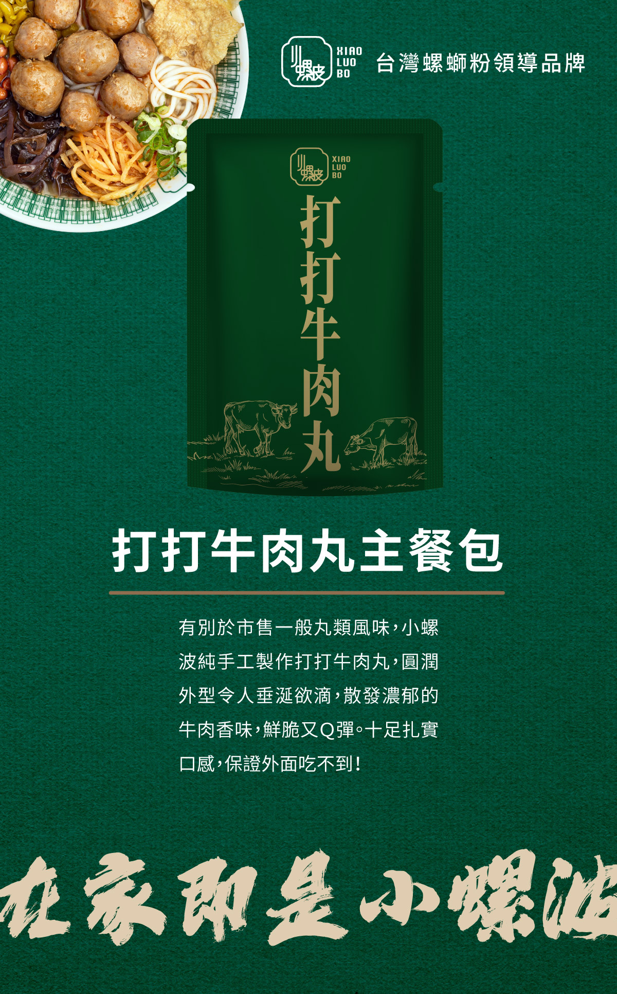 ※此品項為單售主餐包:打打牛肉丸,『不含』干粉絲、高湯、木耳、酸筍、辣油等配料;如需購買「打打牛肉丸螺螄粉料理包」,請至:https://www.xiaoluobo.com.tw/products/beefballs