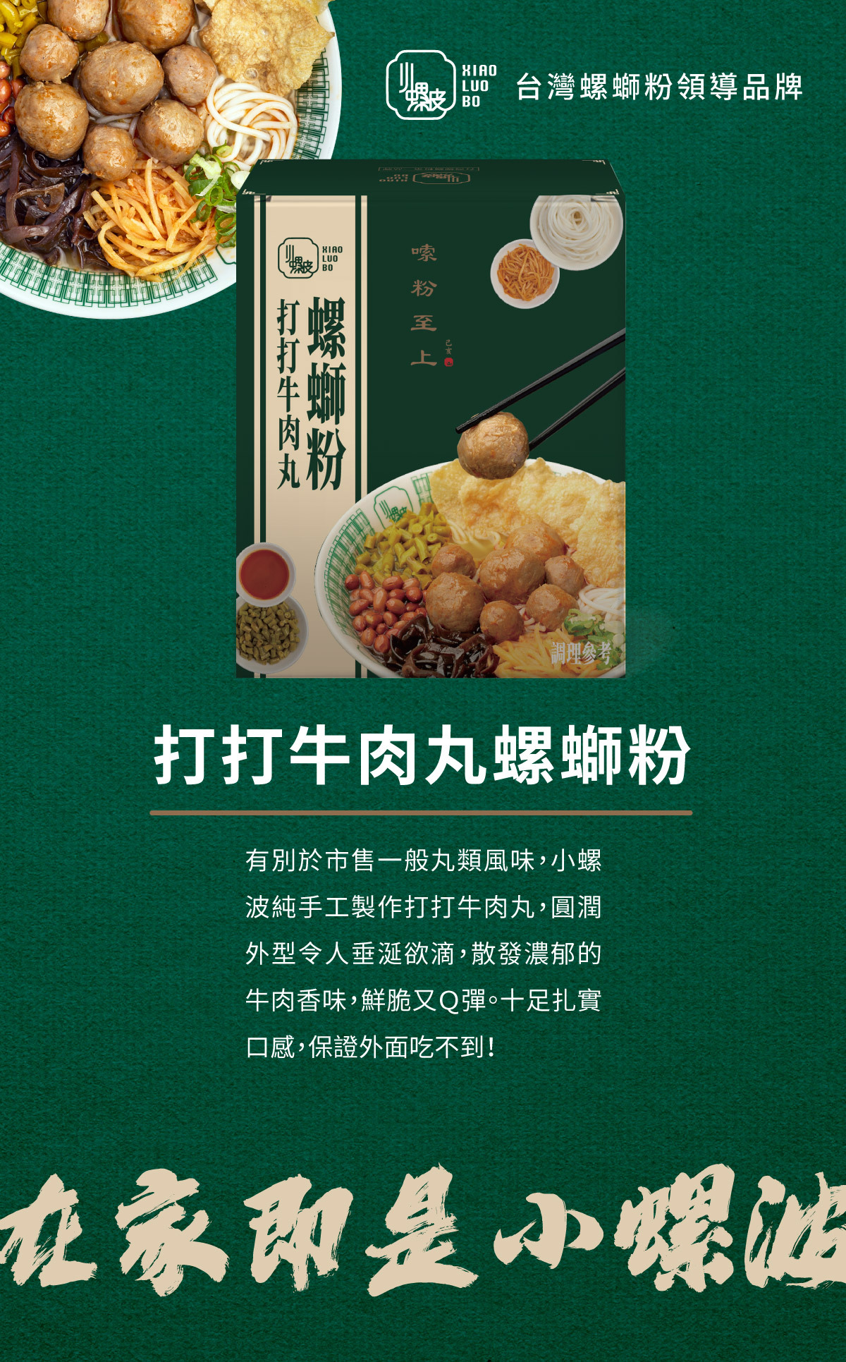 有別於市售一般丸類風味,小螺波純手工製作打打牛肉丸,圓潤外型令人垂涎欲滴,散發濃郁的牛肉香味,鮮脆又Q彈。十足扎實口感,保證外面吃不到!