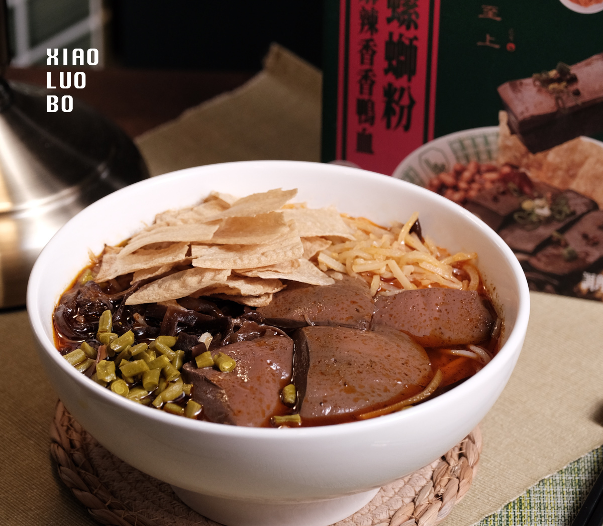 店內暢銷每桌必點!小螺波特製麻辣醬燉煮新鮮鴨血,口感綿密、麻中帶辣,保證嗑得舒適過癮!嗦得暢快帶勁!